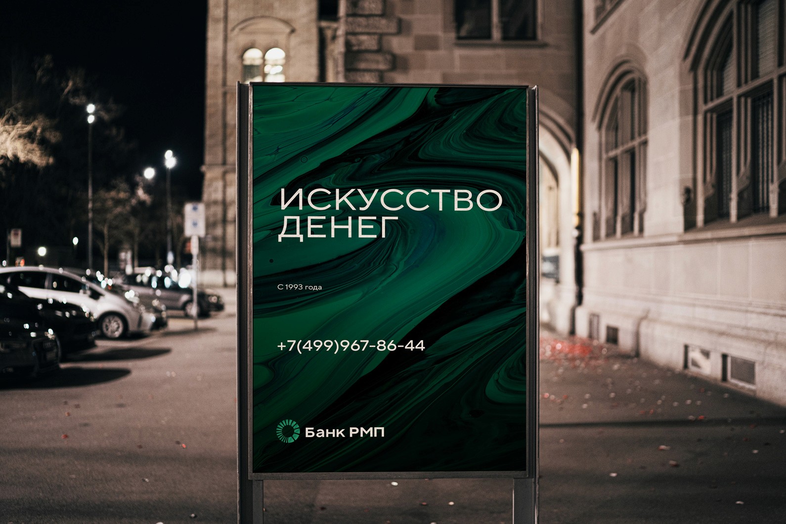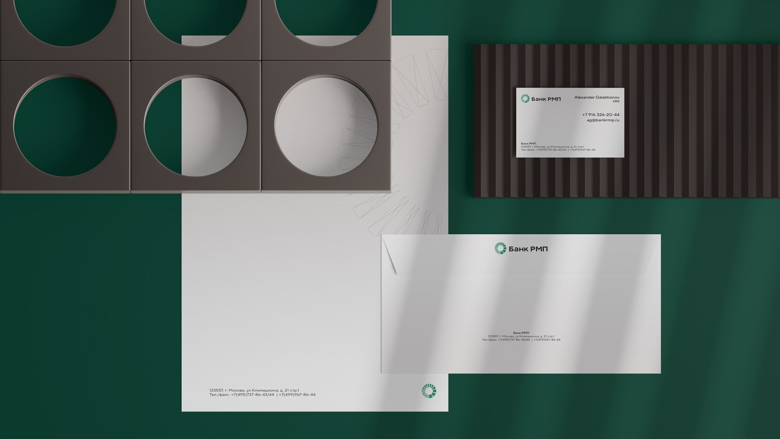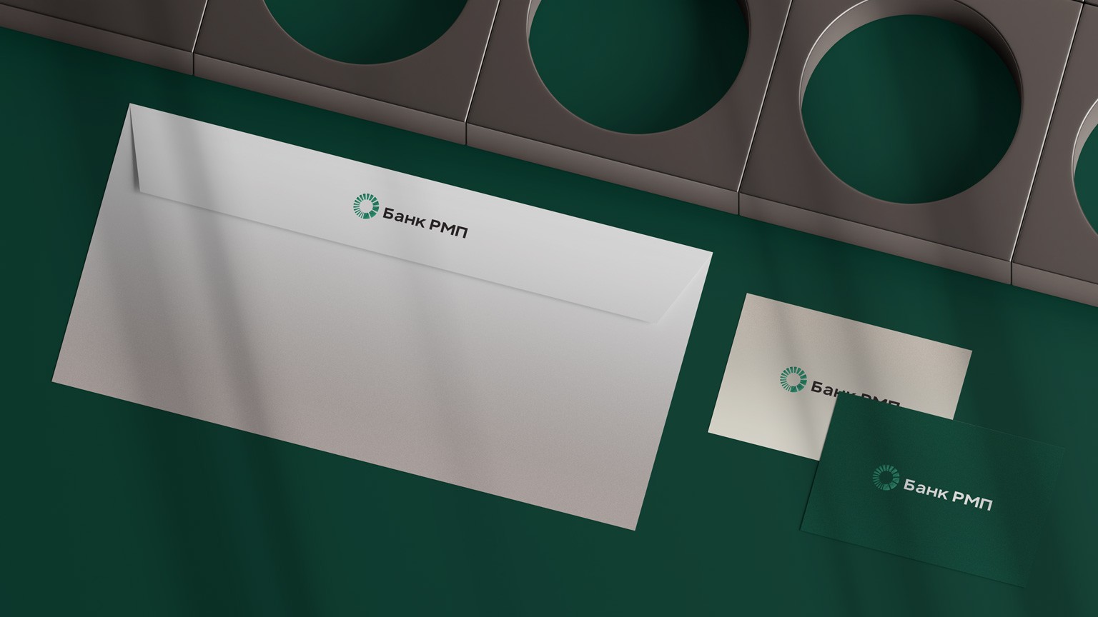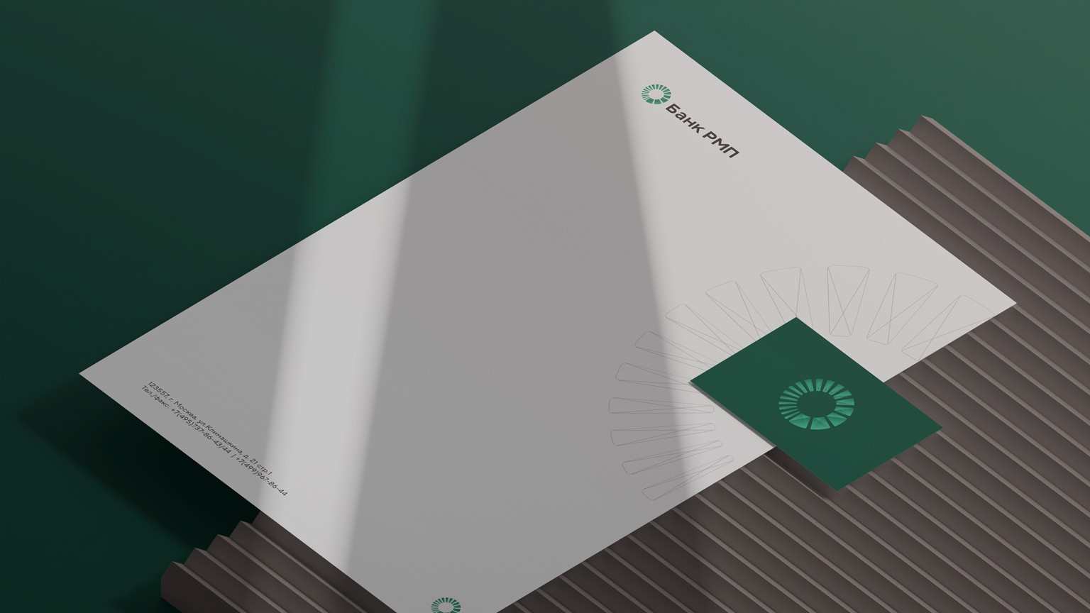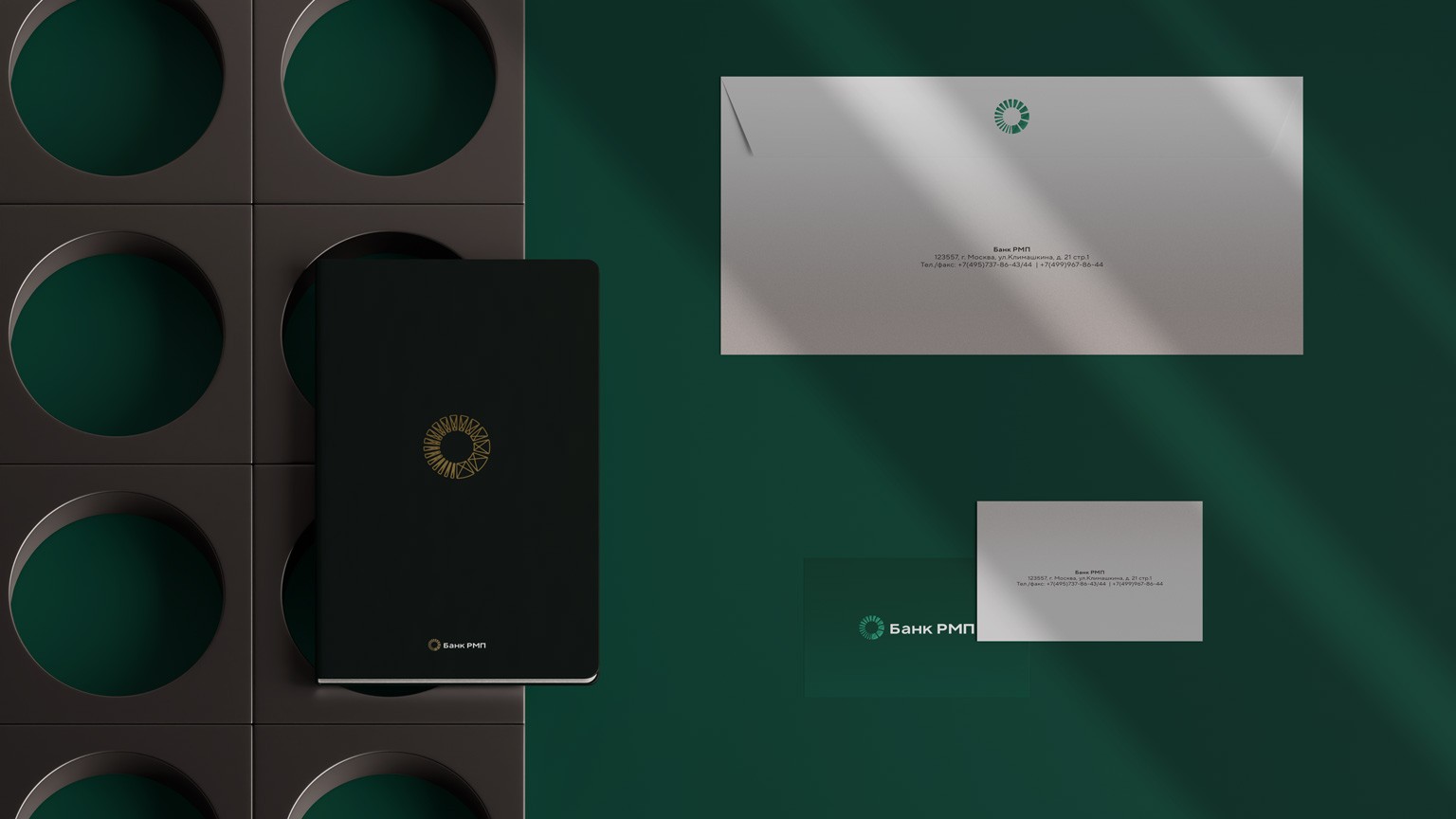 Минимализм, глубокие изумрудные оттенки и динамичные формы создают запоминающийся визуальный язык, который транслирует ключевые качества Банк РМП: надежность, прогрессивность и внимание к деталям.